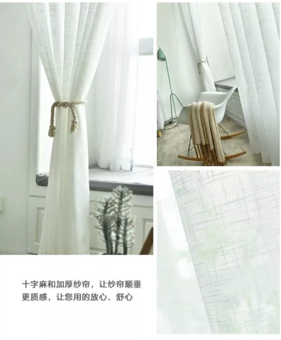 Visillos Material Algodón Y Lino,1par Enviar Ganch,Pasante biela y riel doble propósito